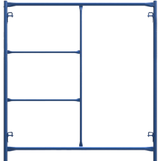 The Mason Frame variant features closely spaced horizontal members for supporting platforms and material loads at various heights. It is built for heavy-duty applications such as blockwork, rendering, and facade construction